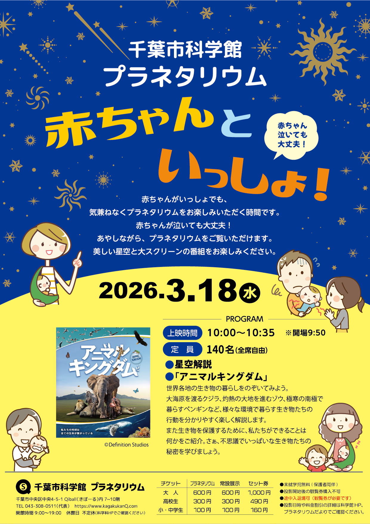 赤ちゃんがいっしょでも、気兼ねなくプラネタリウムをお楽しみいただく時間です。