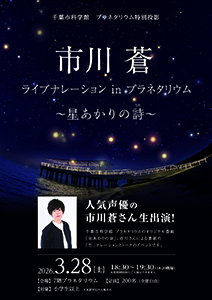 千葉市科学館オリジナル番組「星あかりの詩」のナレーションを担当した声優の市川蒼さんが、科学館のプラネタリウムで番組のナレーションをライブで行います。また、番組にまつわる想い出などをお話しします。