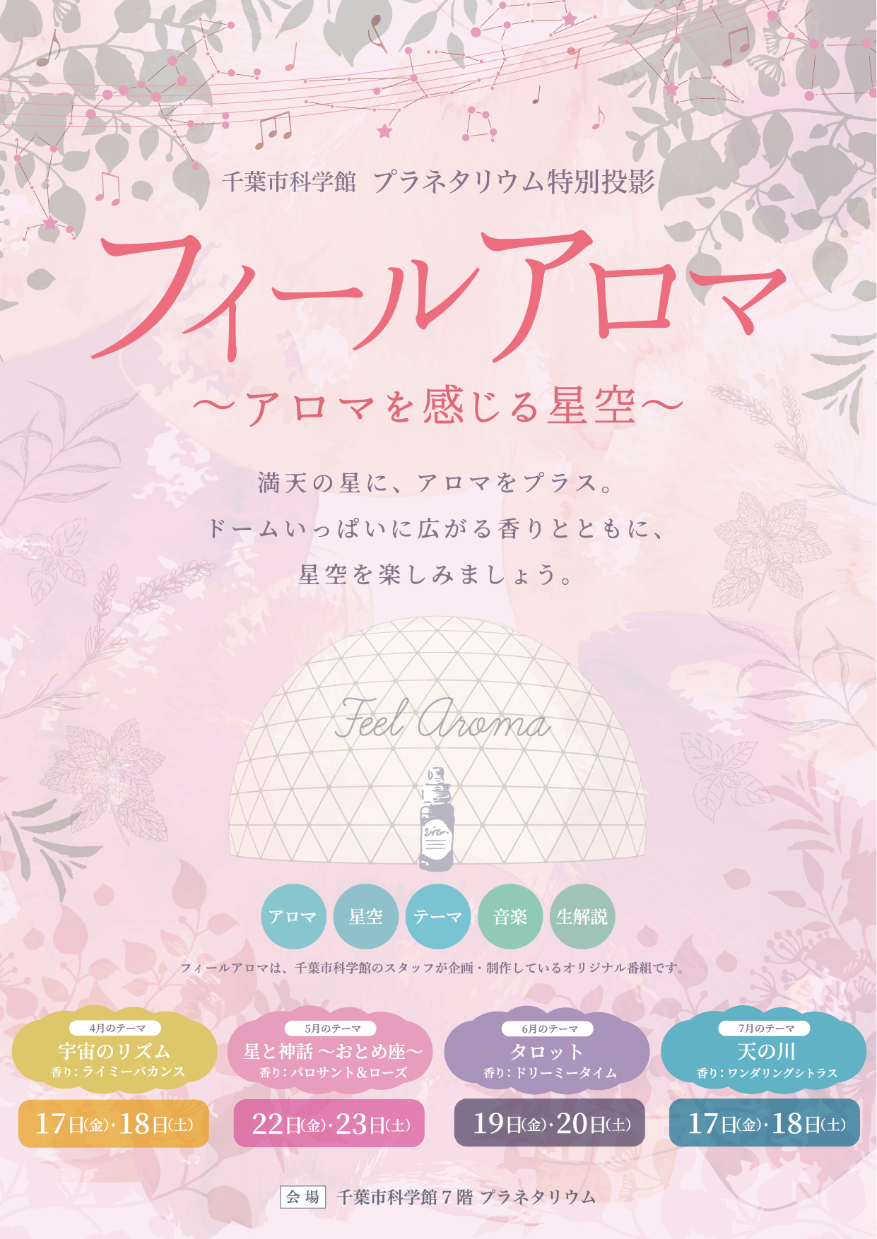 星空と香りのコラボレーションを科学館スタッフの生解説でお楽しみください。